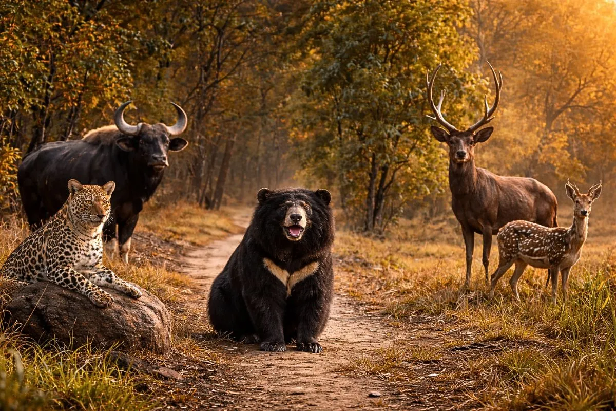 Other widespread species are Beheda, Hirda, Karaya Gum, Mahua Madhuca (crepe myrtle), and Lannea coromandelica. Aside from the keystone species, the Bengal tiger, Tadoba Tiger Reserve is home to other mammals, including: Indian Leopards, Sloth Bears, Gaur, Nilgai, Dhole, Striped Hyena, Small Indian Civet, Jungle Cats, Sambar, Spotted Deer, and Barking Deer. Tadoba National Park is a popular tiger reserve known as “The Land of Tigers.”