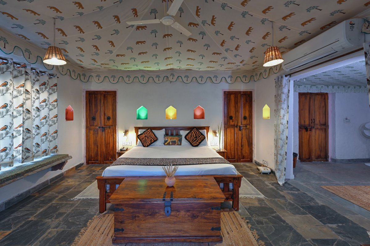Bagh Serai Ranthambore has nine rustic villas made from local materials. Each villa blends into the landscape. They provide accommodations that are both comfortable and eco-friendly.