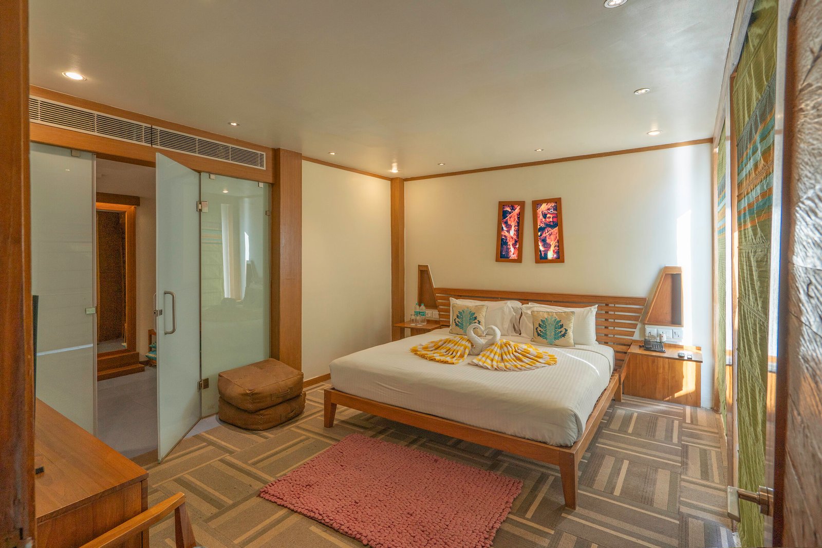 A more spacious and premium cave-style room designed for enhanced comfort and luxury.