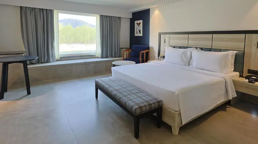 The Deluxe rooms offer a blend of luxury and nature. Each room is spacious and well-equipped. It has stunning views of the Himalayas and the resort’s green lawns. These rooms have all the modern comforts for a good stay. The natural beauty around you invites relaxation.