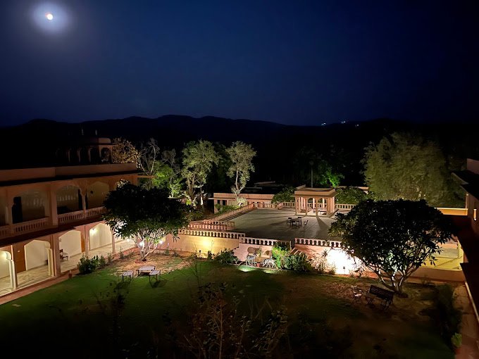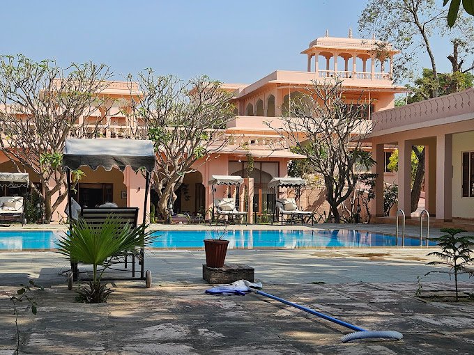 Dev Villas Ranthambore is a peaceful escape in nature. It’s a short distance from the famous Ranthambore National Park. The hotel, inspired by Maharajas’ hunting lodges, blends old and new. It has a traditional design and modern comforts. Whether for a wildlife safari or to relax, Dev Villas promises a memorable stay in a regal setting.