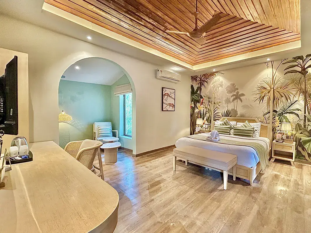 Size: 480 Sqft | Max. Occupancy: 2 guests. The Suite Rooms feature a large bedroom and separate living room. Ideal for families or those needing more space, these suites embody luxury in Corbett.