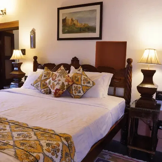 The Heritage Rooms offer a unique stay for history lovers. They blend old architectural charm with modern comforts. These rooms have antique furniture and elaborate decor. They are perfect for those wanting to explore Rajasthan’s culture.